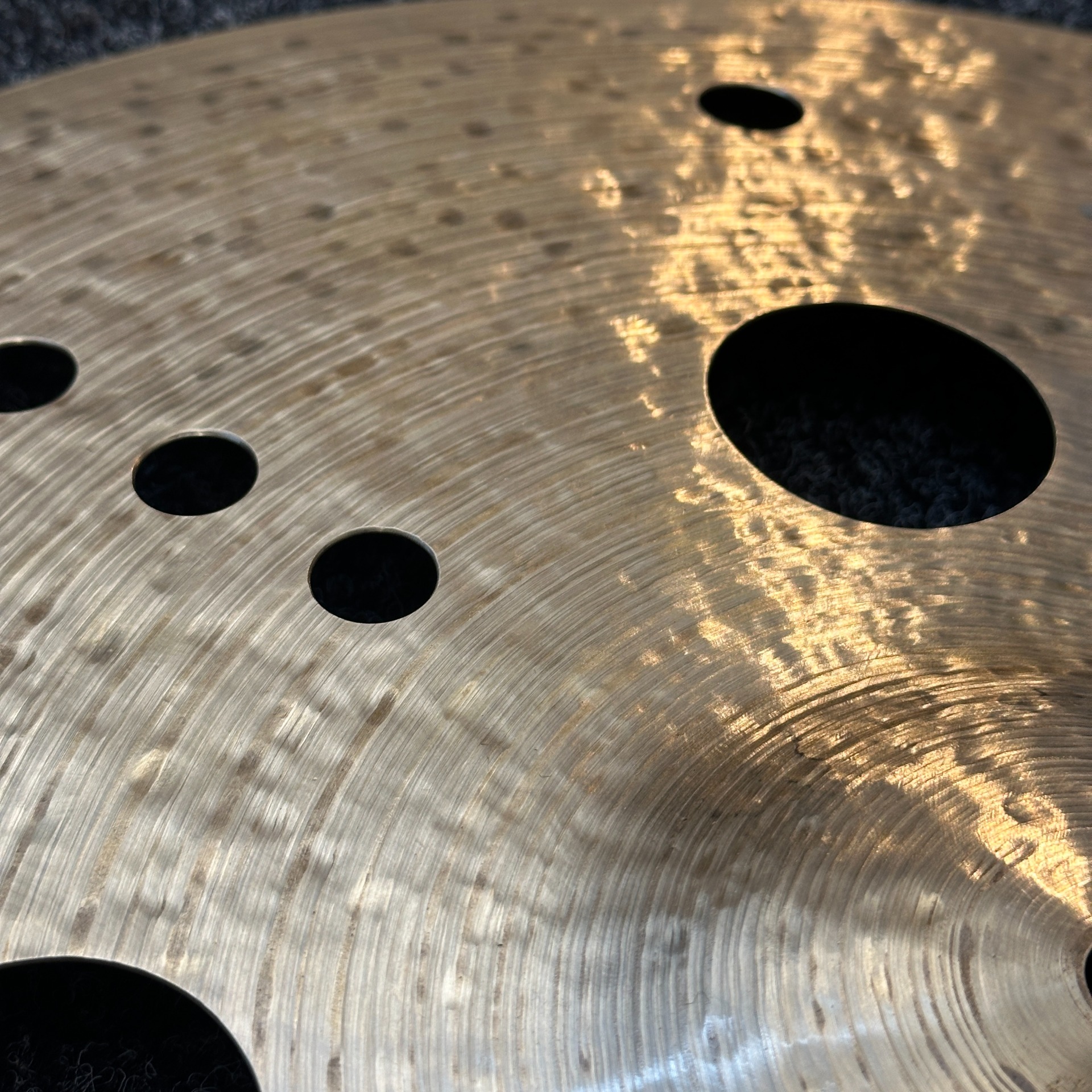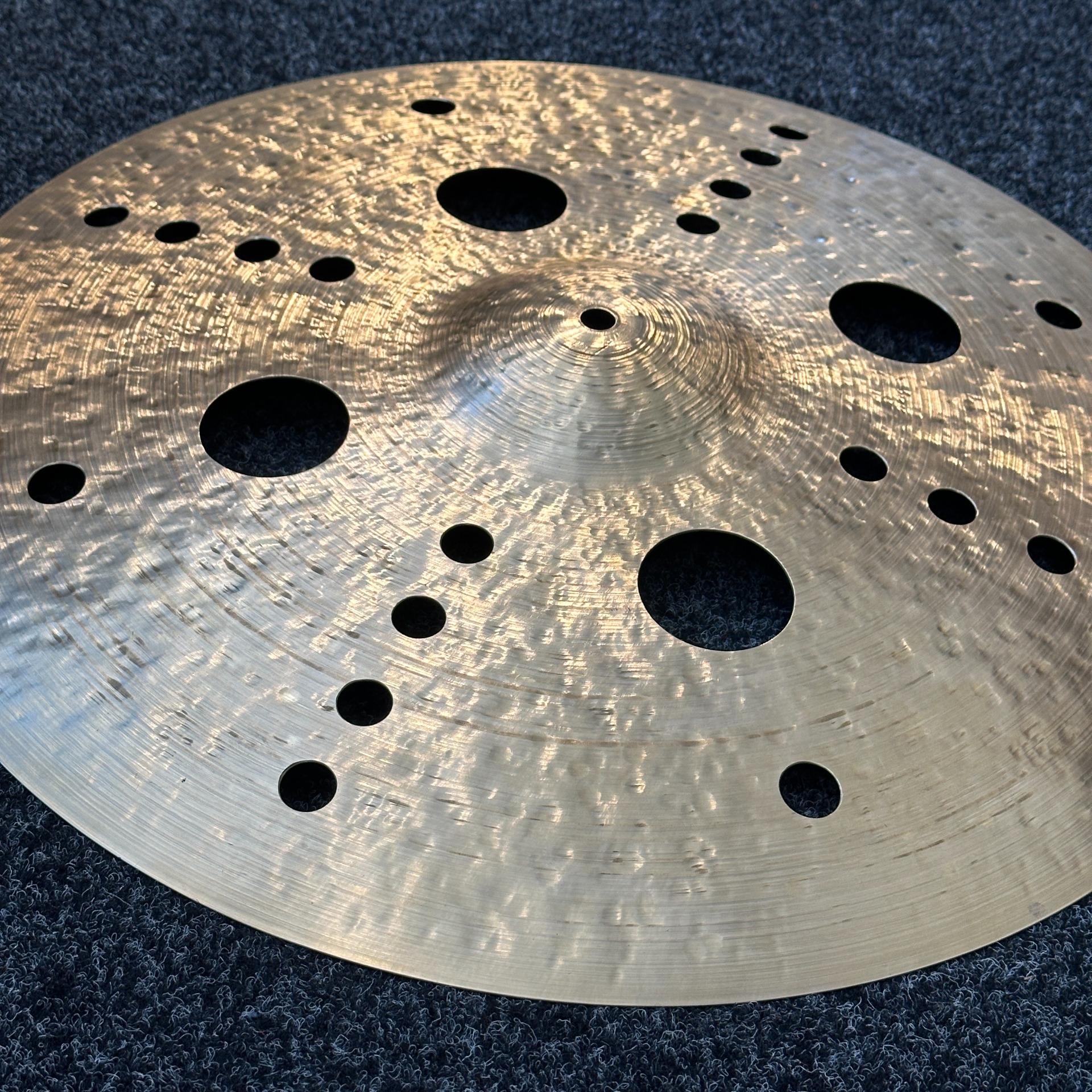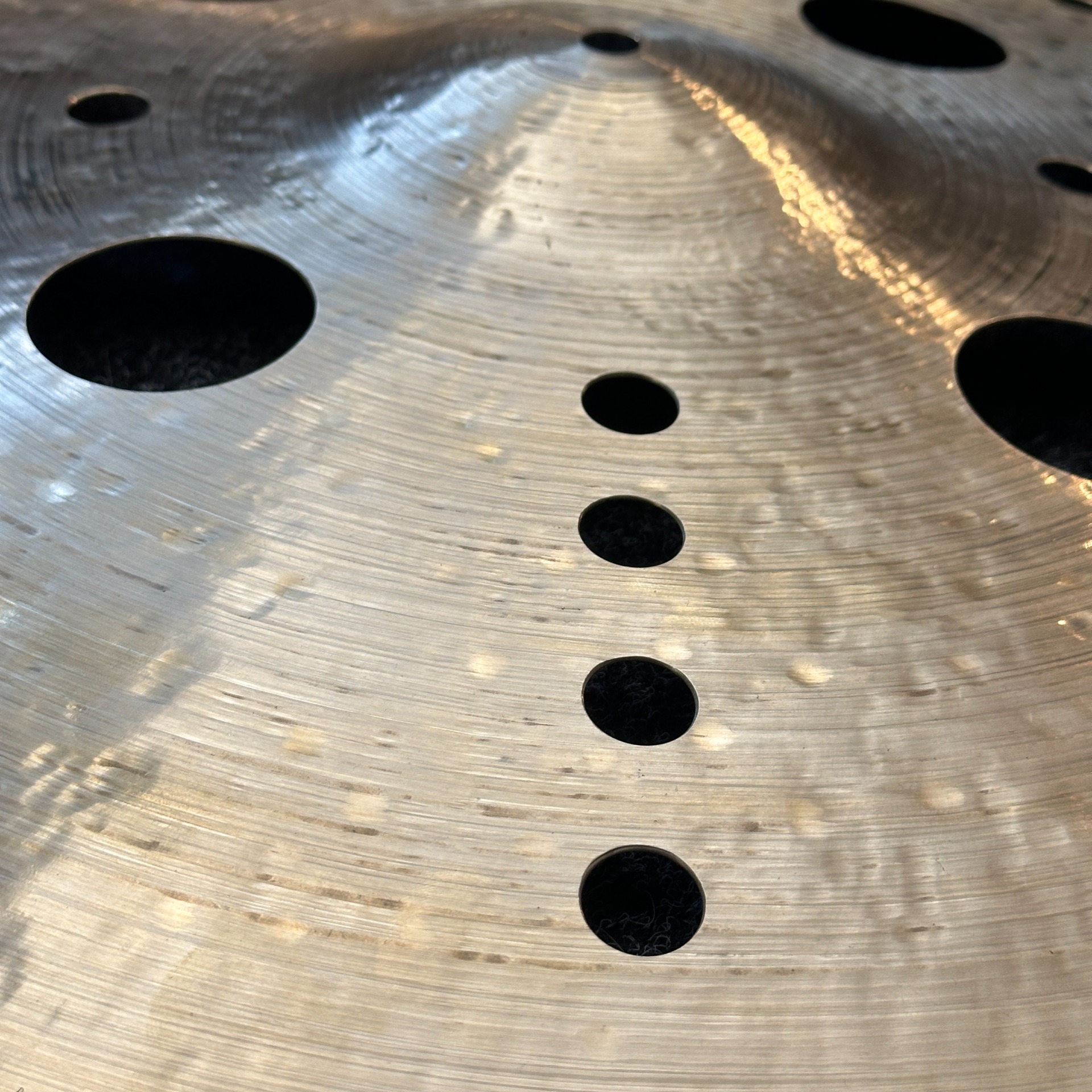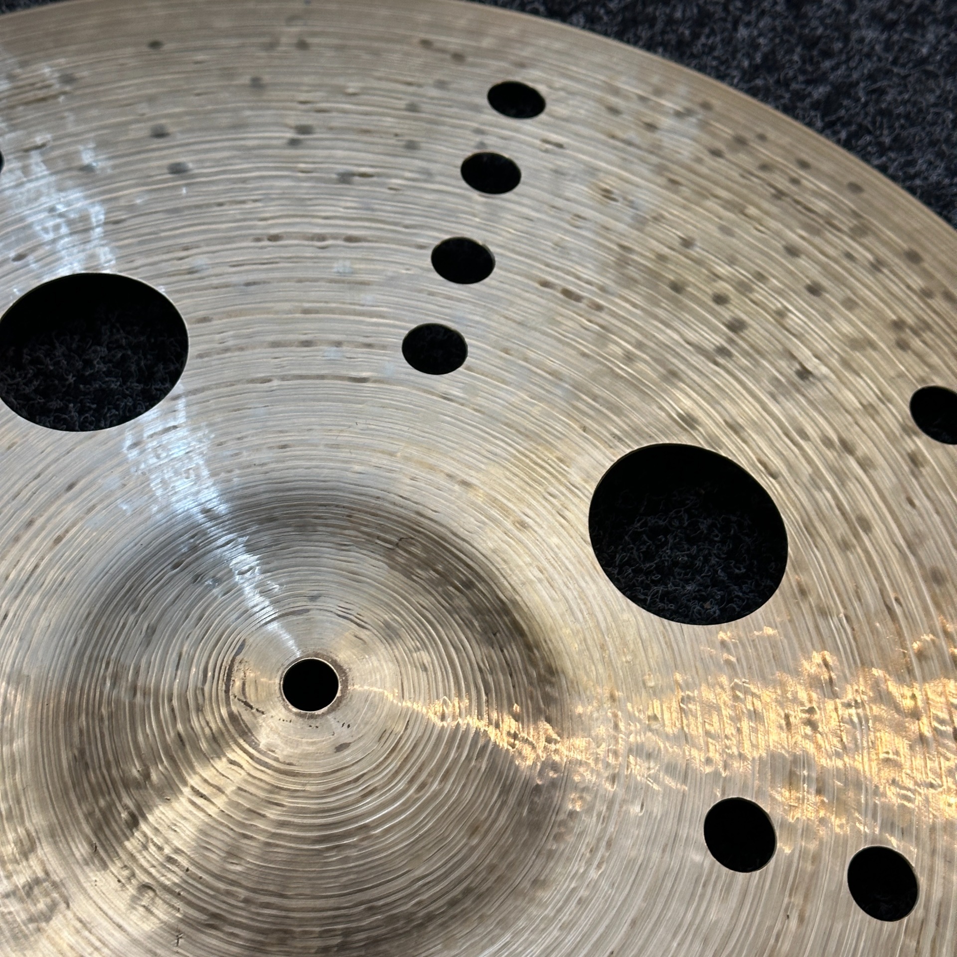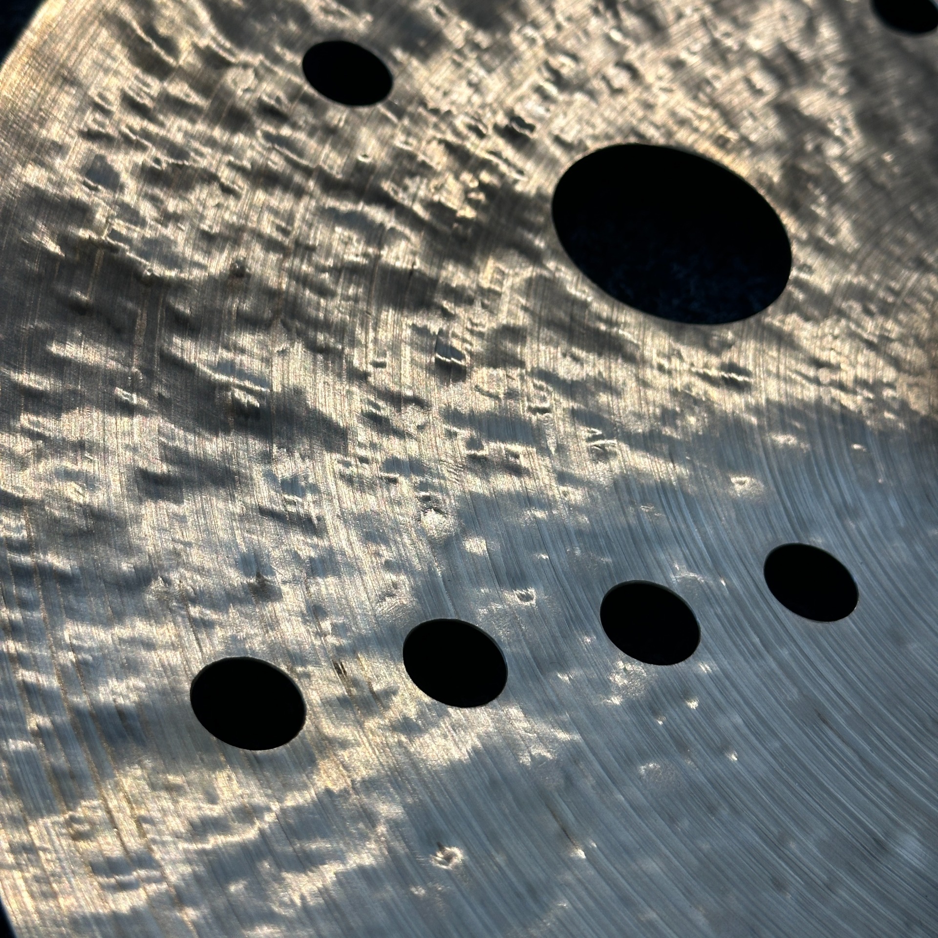 Vyřezané symetrické otvory různých průměrů, nepravidelně tepaný povrch a brutální profil dávají vzniknout zvuku, který trhá mix napůl.