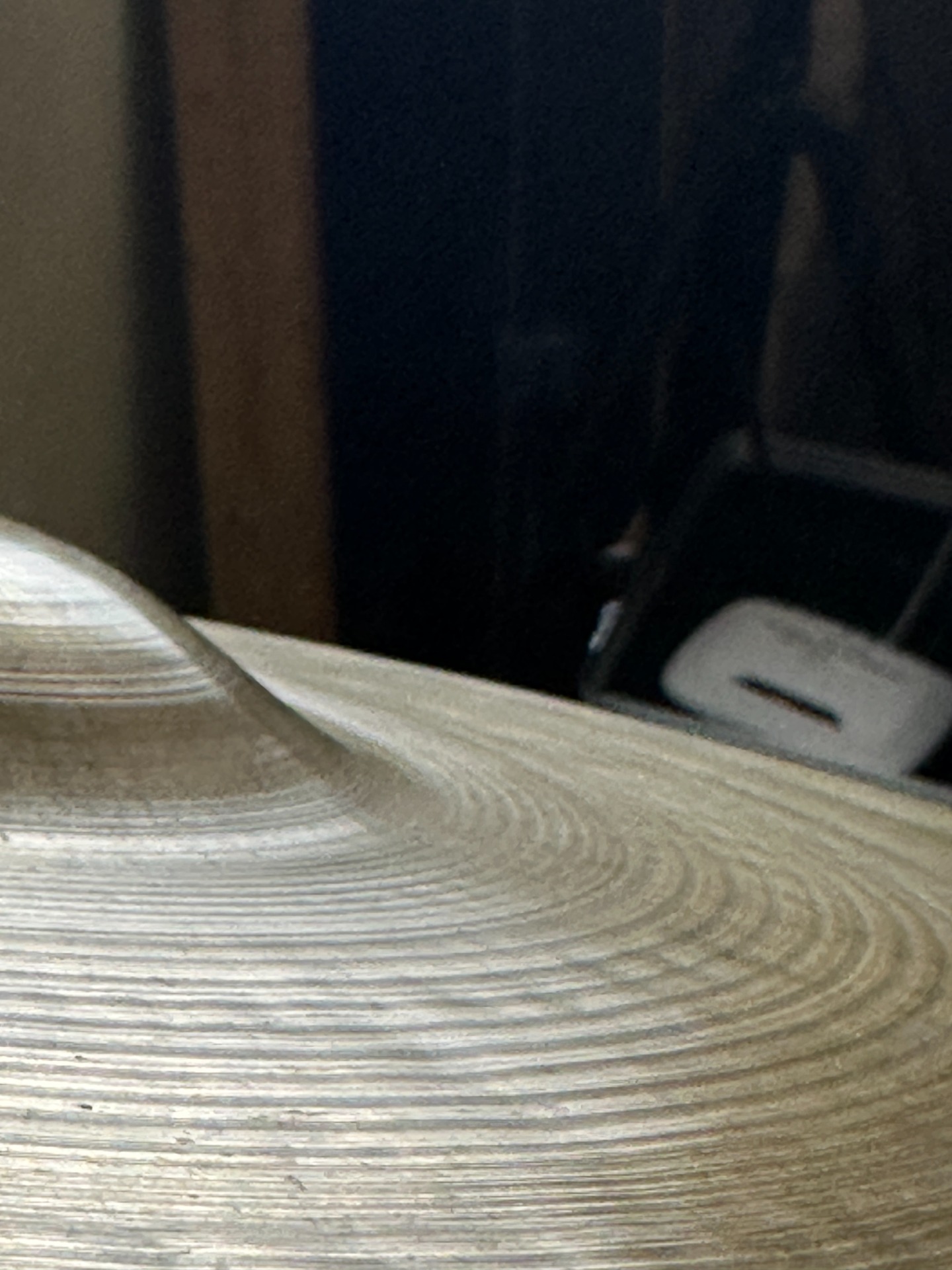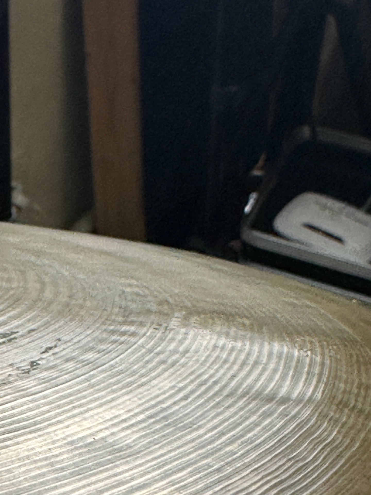 Dalším krokem bylo lehké soustružení – nikoli dramatické a pouze spodní strany pro zachování loga a původní topografie. Úbytek hmotnosti se pohyboval přibližně kolem 200 gramů. Činel se tím citelně odlehčil, otevřel a získal čistší, plnější tón.